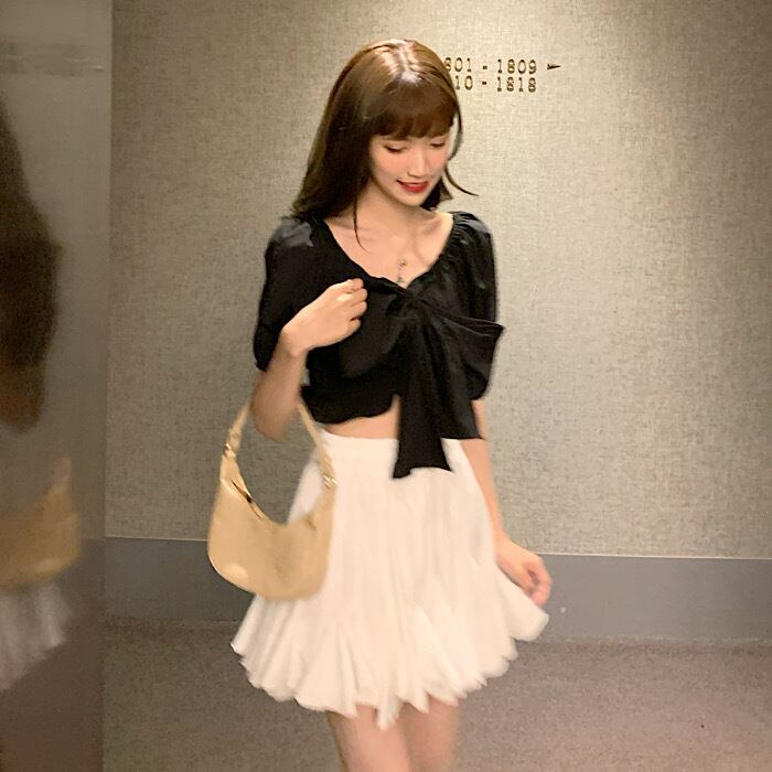 サマーリボンショートシャツ ハイウェストウェストスカート 夏物 フラワークラフター77818966649