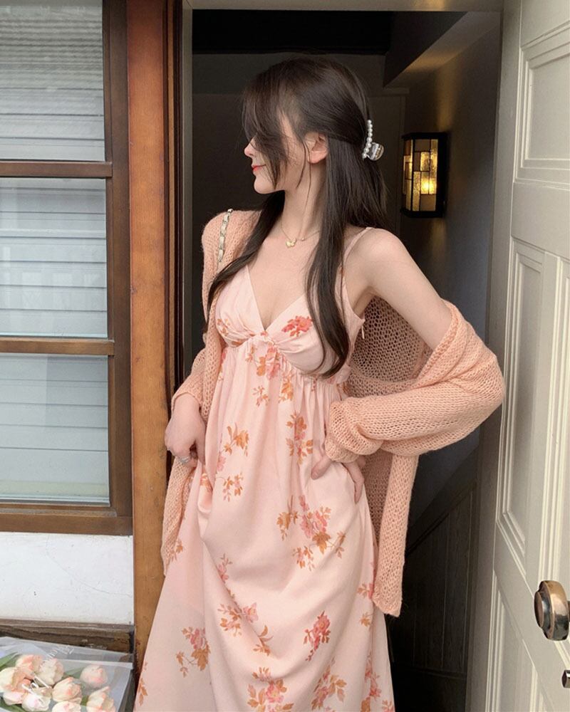 色:ピンクスカートワンピース,ピンクカーディガンワンピース