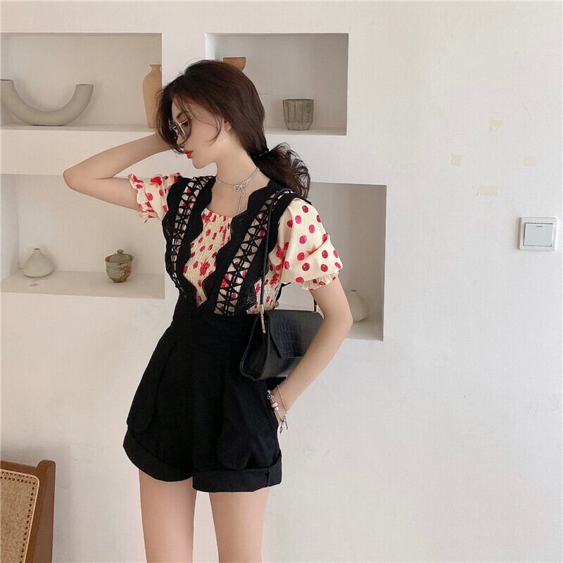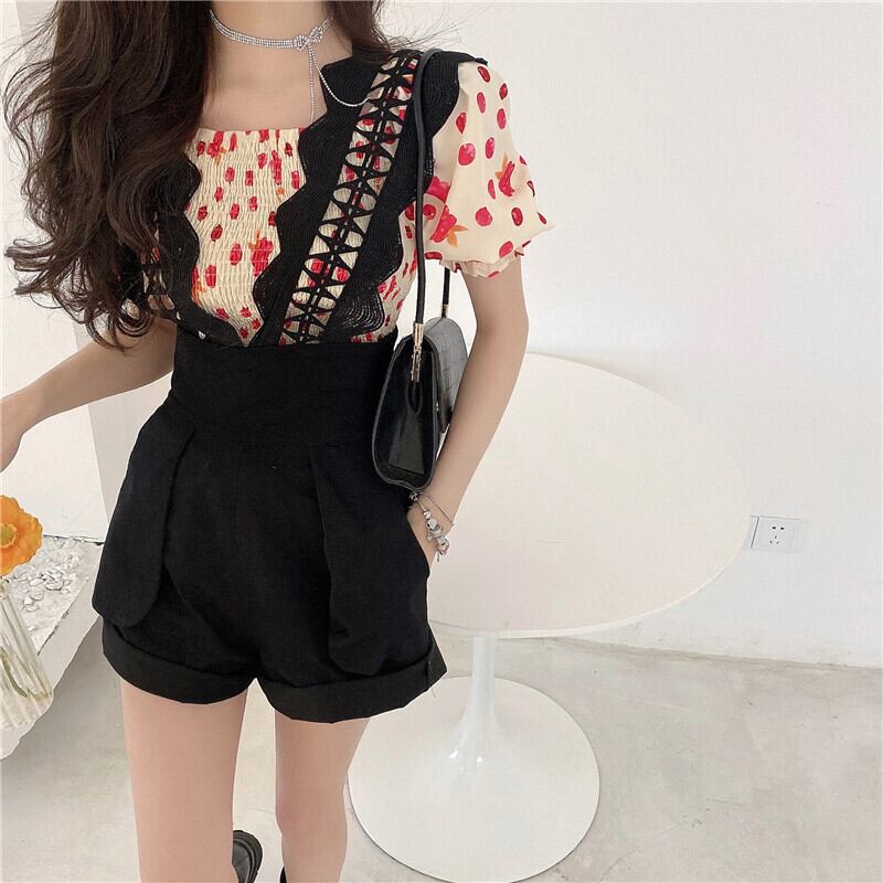 レッドサマースタイルスリーブトップス ハイウェストウェスト 夏物 フラワークラフター28736259362