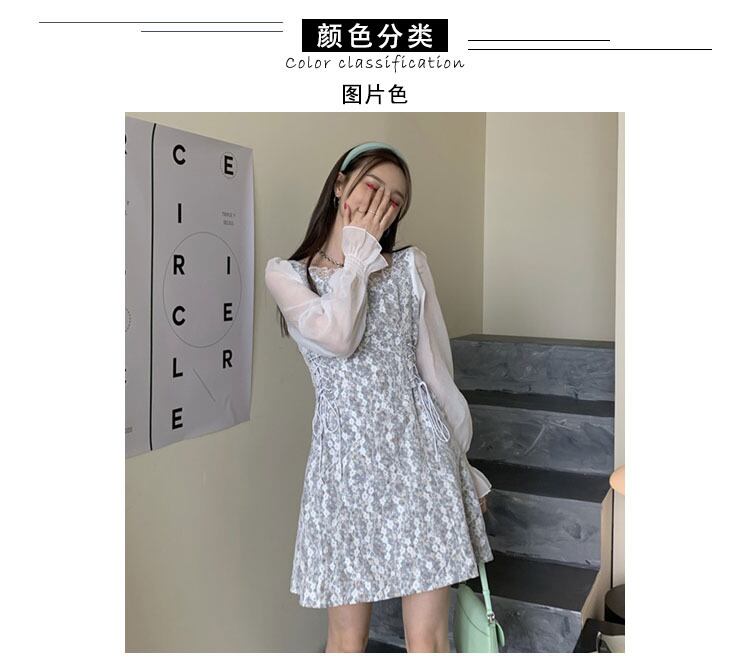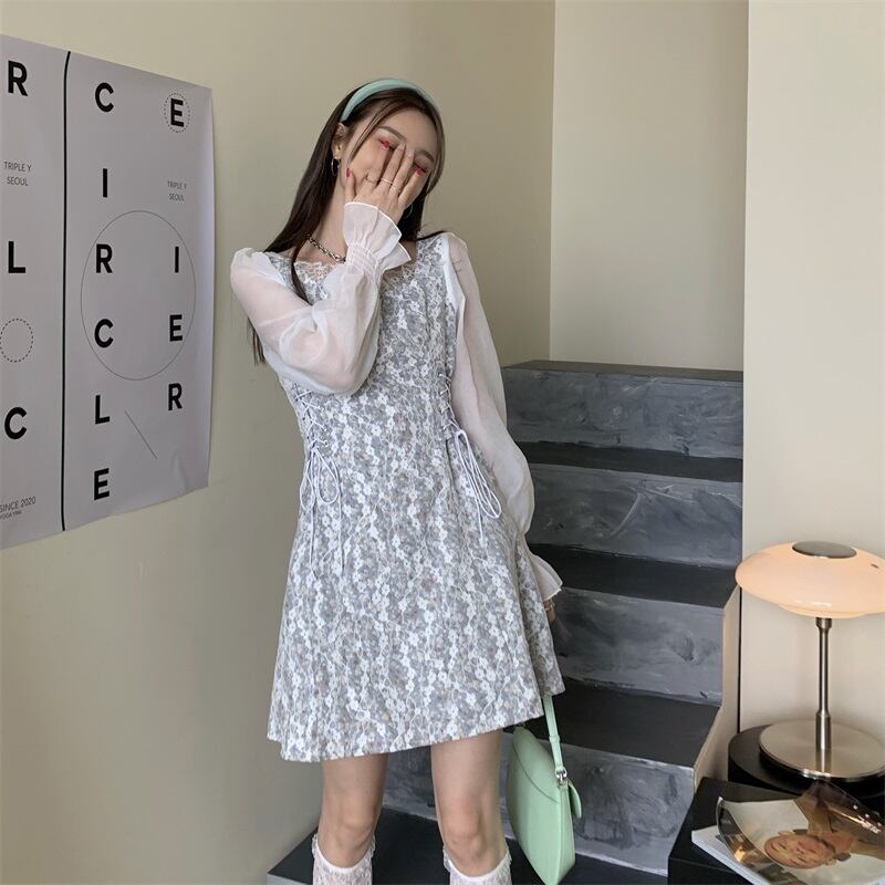 フローラルドレス スプリングオータムスタンダードシフォンショートスカート レトロ 春物 秋物 花柄 フラワークラフター82070271478