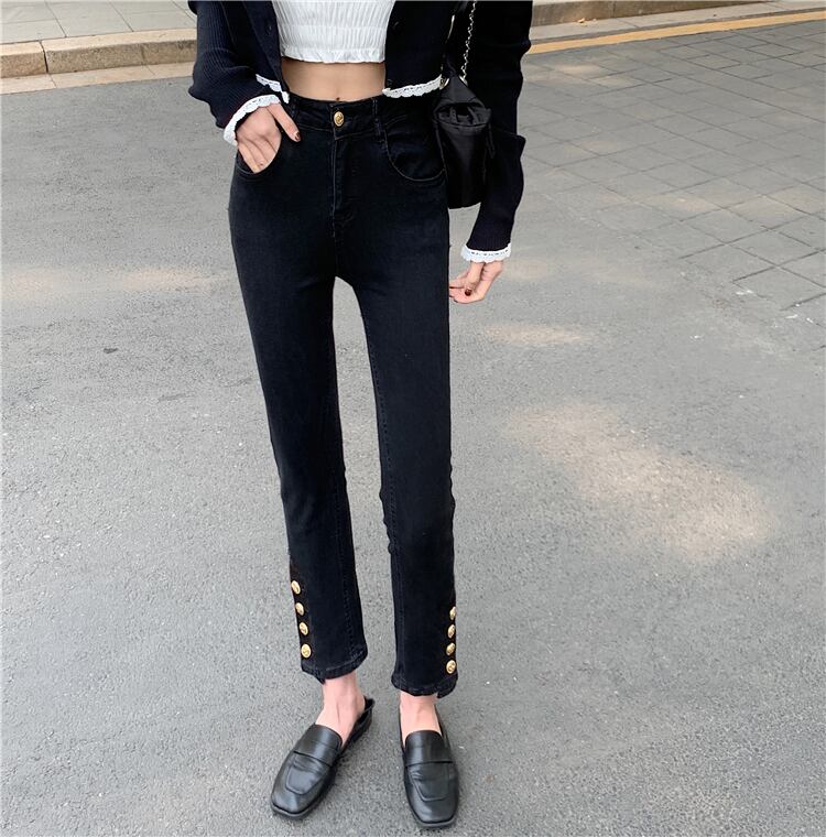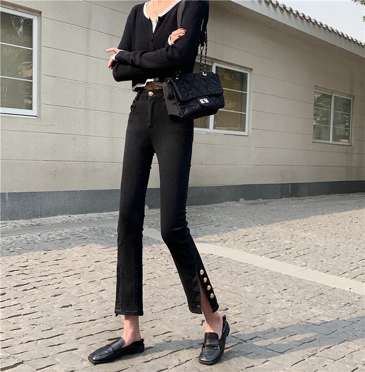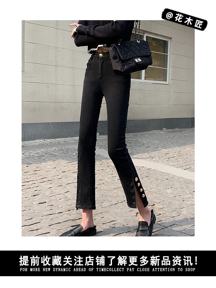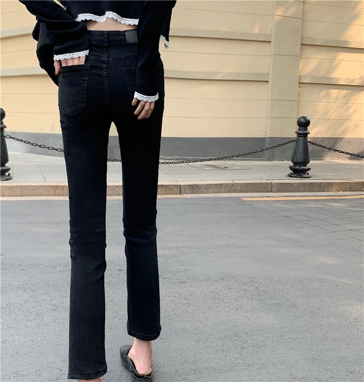 ブラックジーンズ スプリングオータムパンツ スリムハイウェストウェスト 春物 秋物 フラワークラフター48445021844