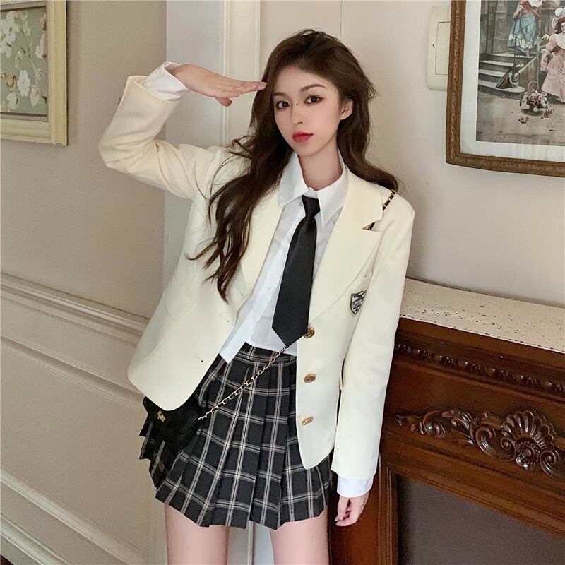 色:カーキ色のスーツワンピース,白いスーツのワンピース,青いチェックスカートのワンピース,ブラックグリッドスカートシングル,白いシャツワンピース