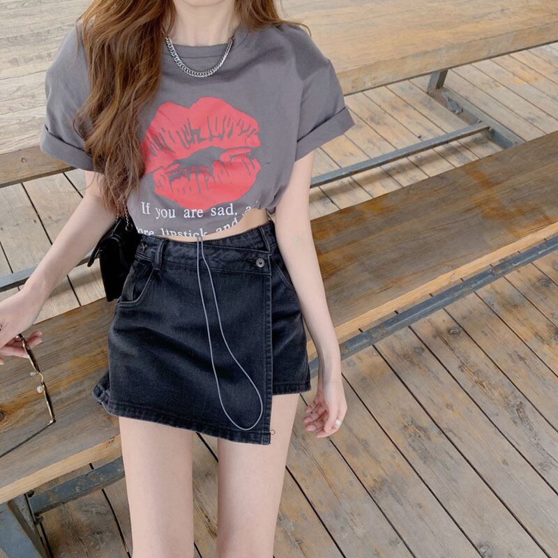 プリントTシャツ シャツ レディースサマーラウンドネックショートウェストギャザートップス 夏物 Oネック フラワークラフター20528297549