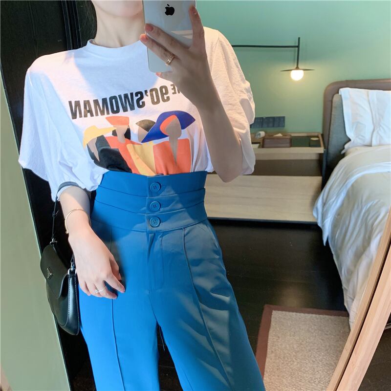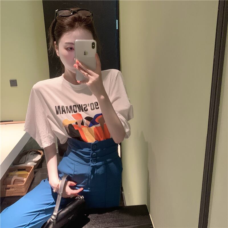 ホワイトTシャツ サマールーズレッドプリントトップス 夏物 フラワークラフター1426601097