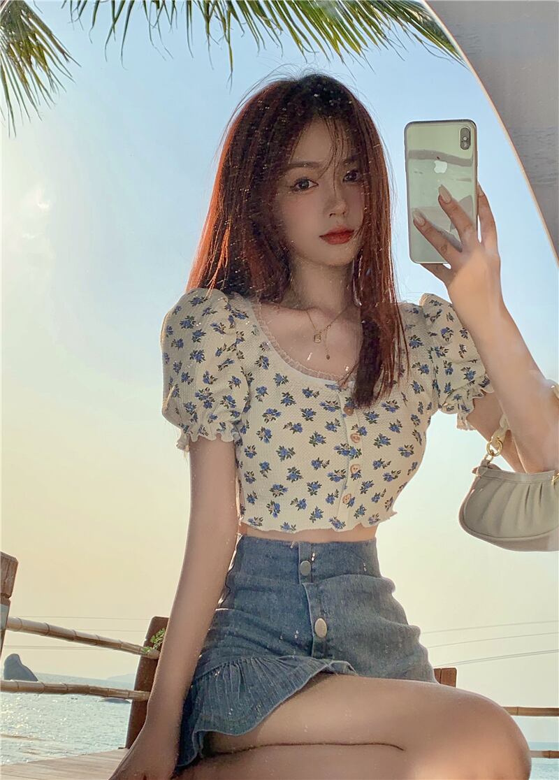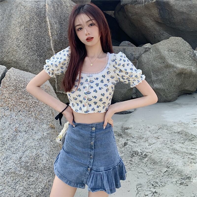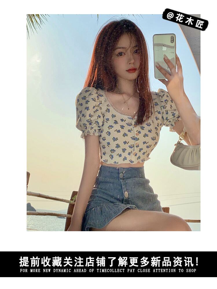 フローラルTシャツ サマースタイルスタンダードスリーブレースショートトップス レトロ 夏物 花柄 スクウェア ステッチ フラワークラフター99133027835
