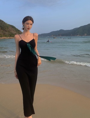 ドレス サマーリボンVネックブラックスカート 夏物 フラワークラフター5771866862