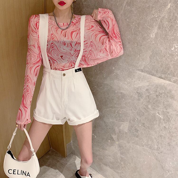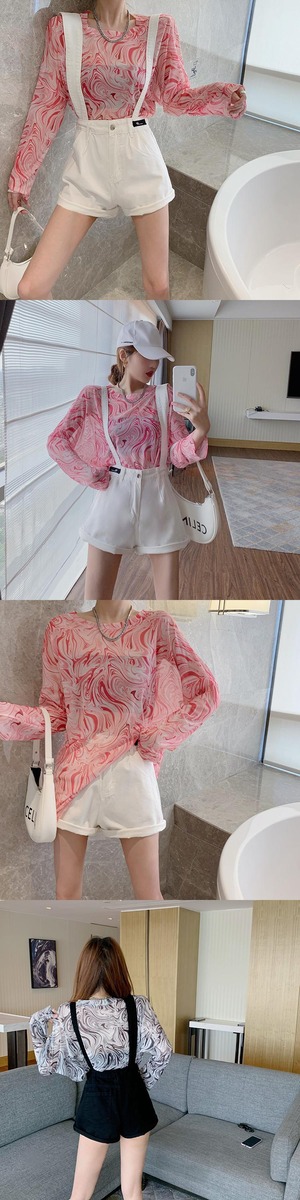 ブループリントTシャツ サマー薄手ルーズレッドトップス ロング 夏物 フラワークラフター11430588984