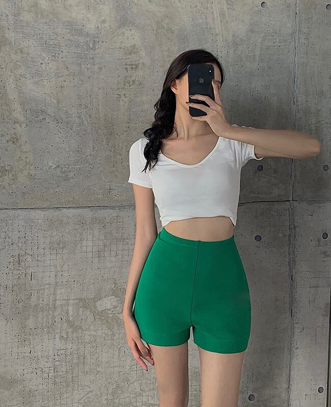 グリーンレギンス サマースリムハイウェストウェストパンツ 薄手ショーツ 夏物 ブルマー スリムヒップ フラワークラフター45085007213