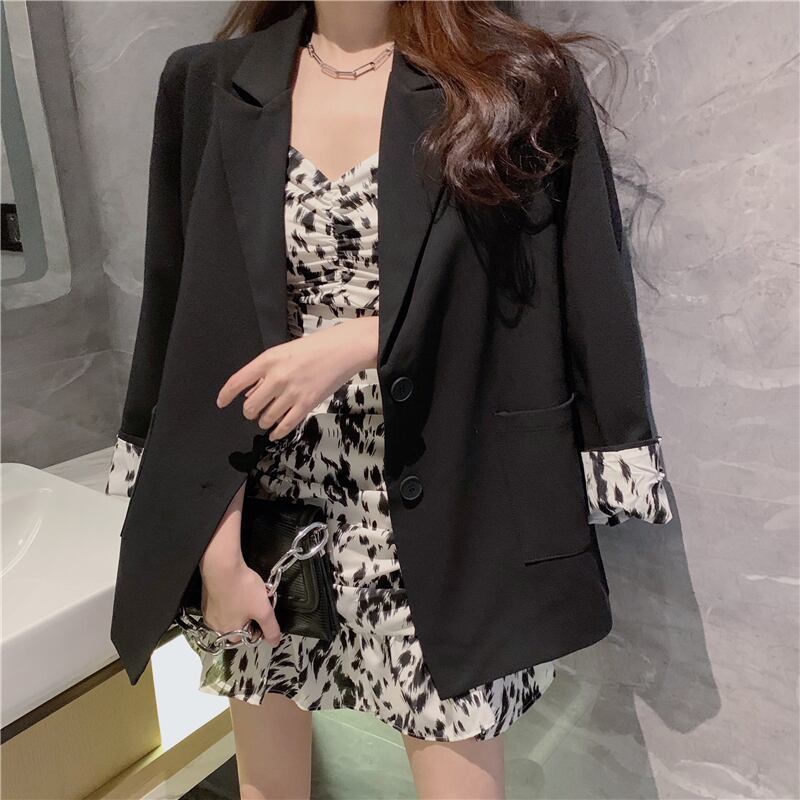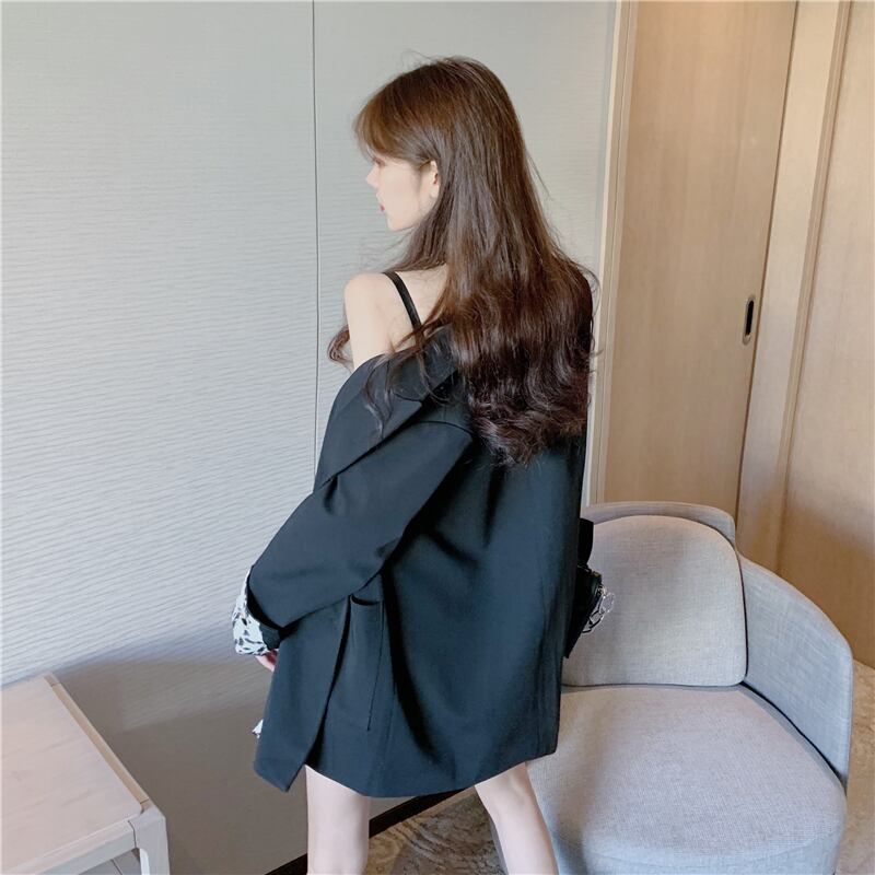 オータムブラックジャケット レディーススタイルルーズトップス ロング 秋物 ステッチ フラワークラフター88697558519