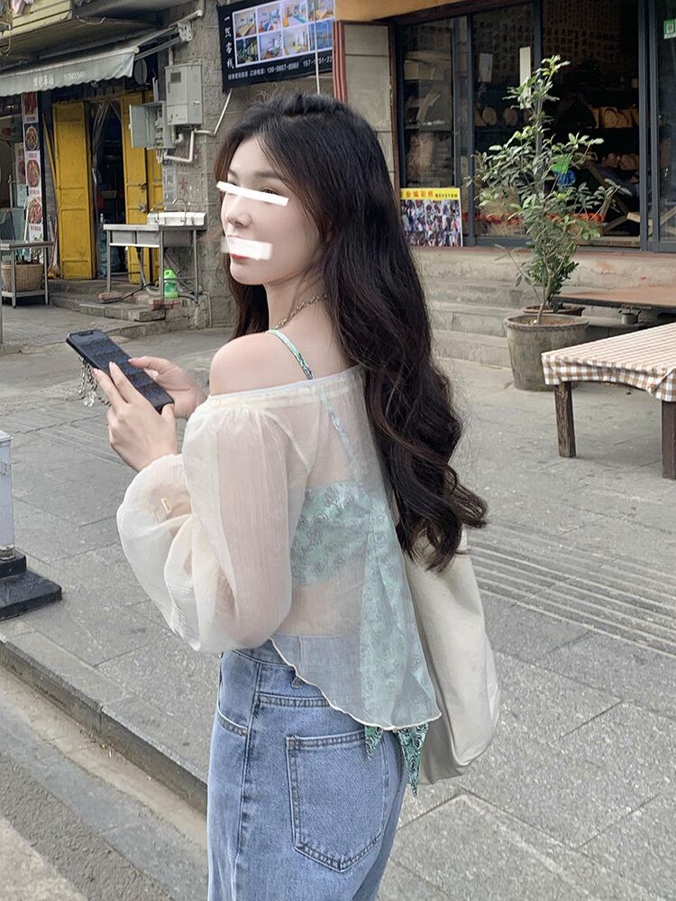 サマー薄手シャツ スリムショートトップス ロング 夏物 フラワークラフター47301330768