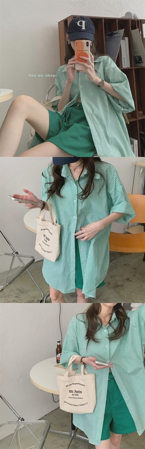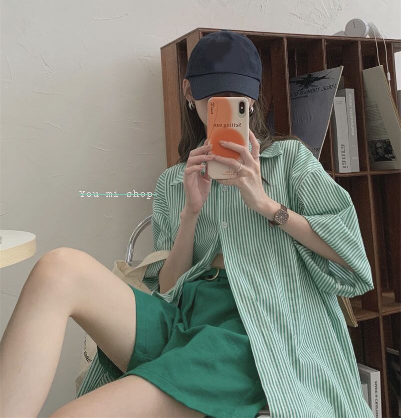 ストライプシャツ サマーカラールーズトップス 夏物 フラワークラフター45980433981