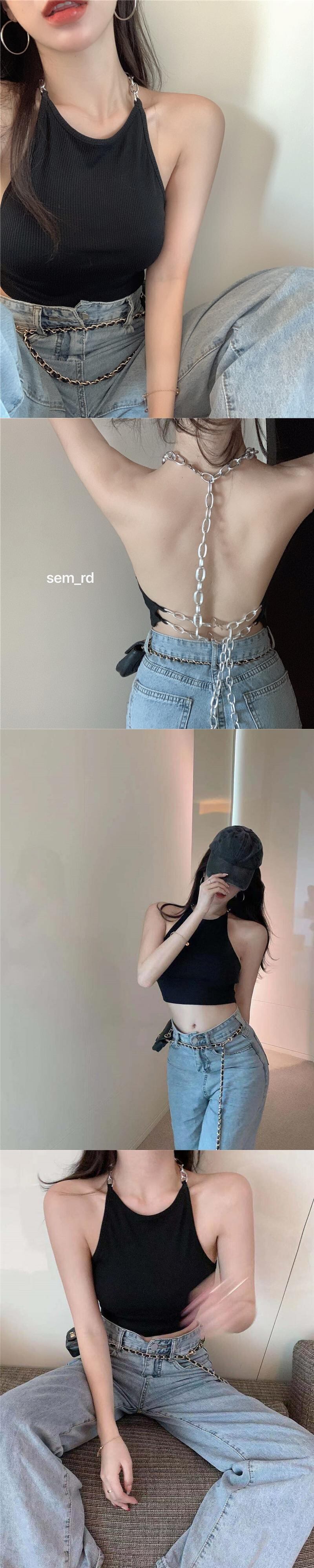 チェーン ホルターサマーショートトップス 夏物 フラワークラフター67591568224