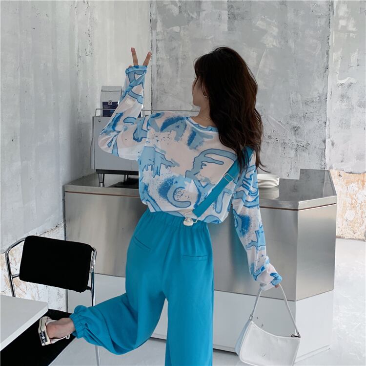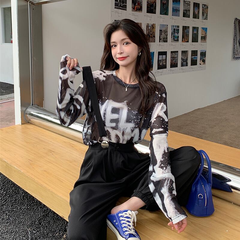 Tシャツ シャツ サマーレッド薄手プリント柄ルーズトップス ロング 夏物 フラワークラフター40209022072