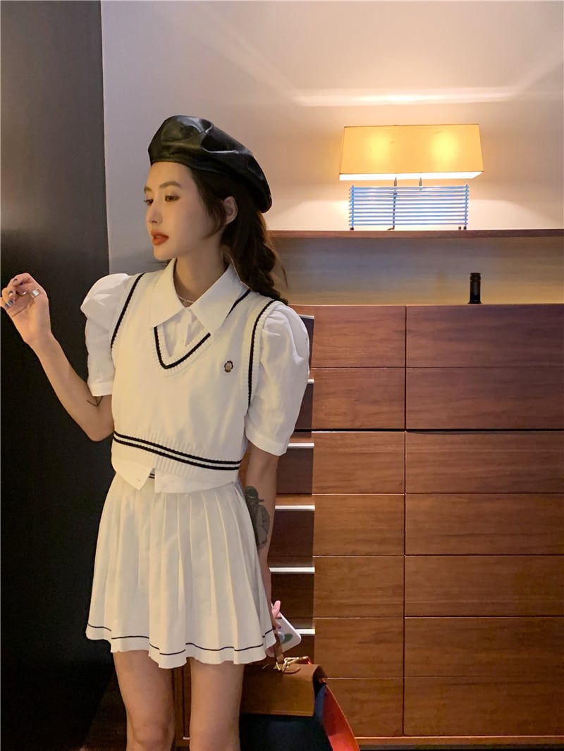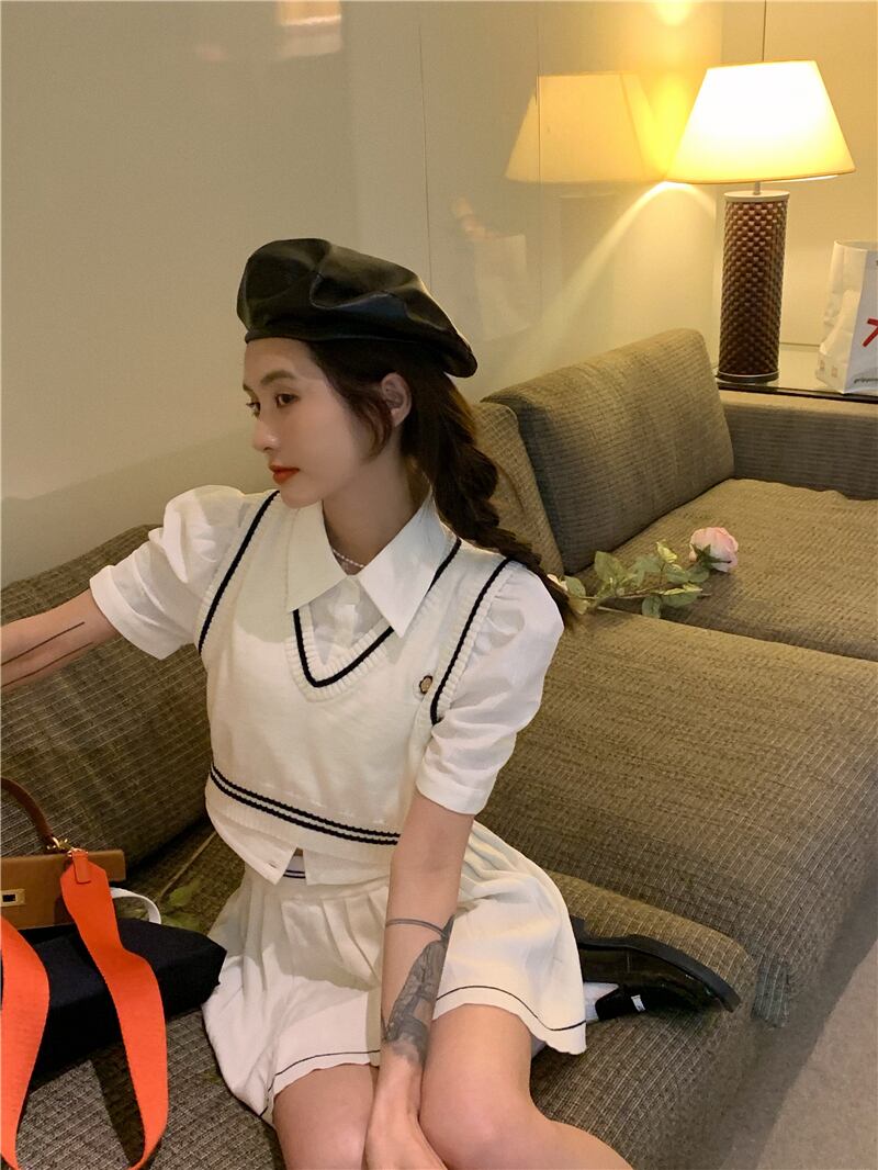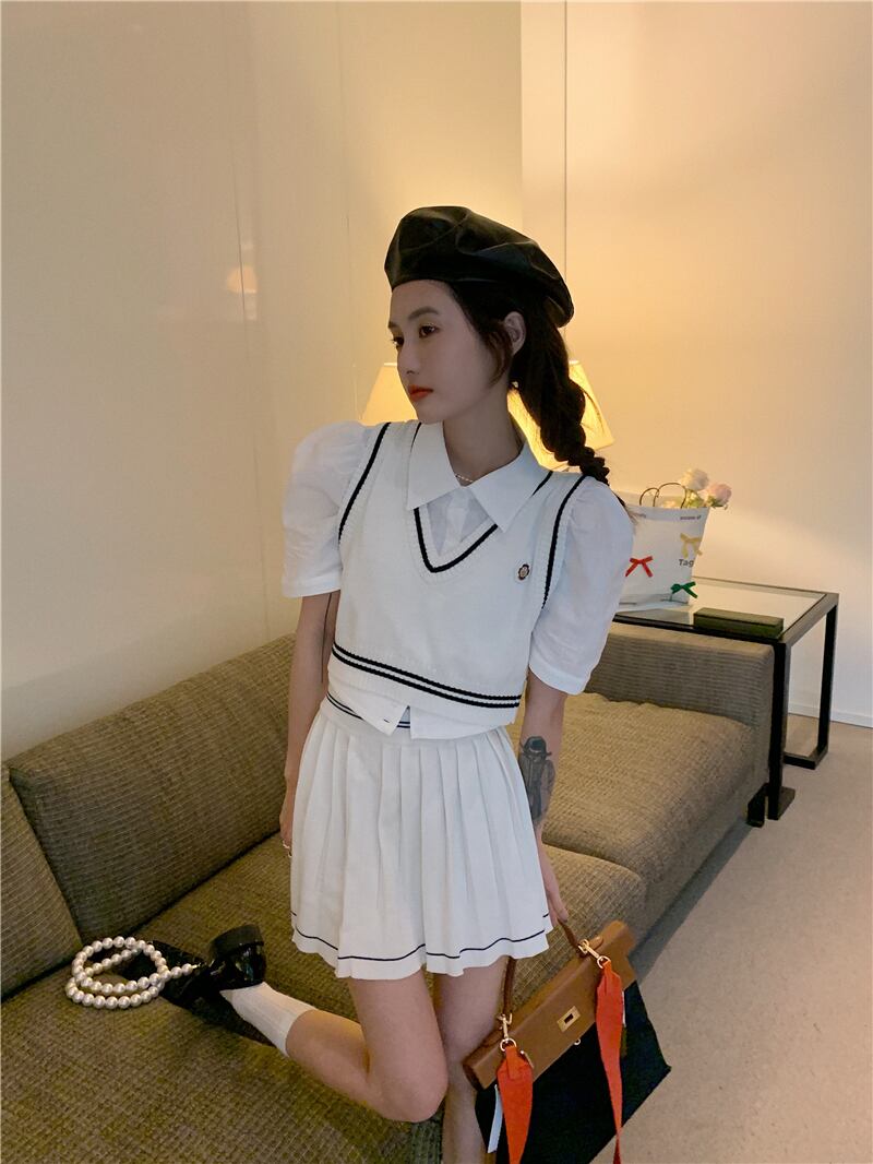色:ニットベストシングルピース,ニットショートスカートワンピース,シャツ一枚