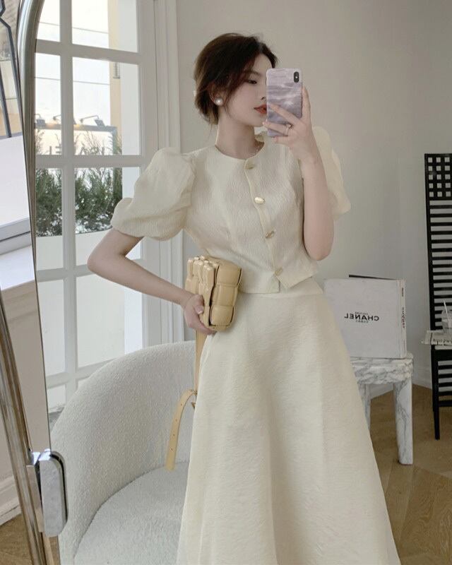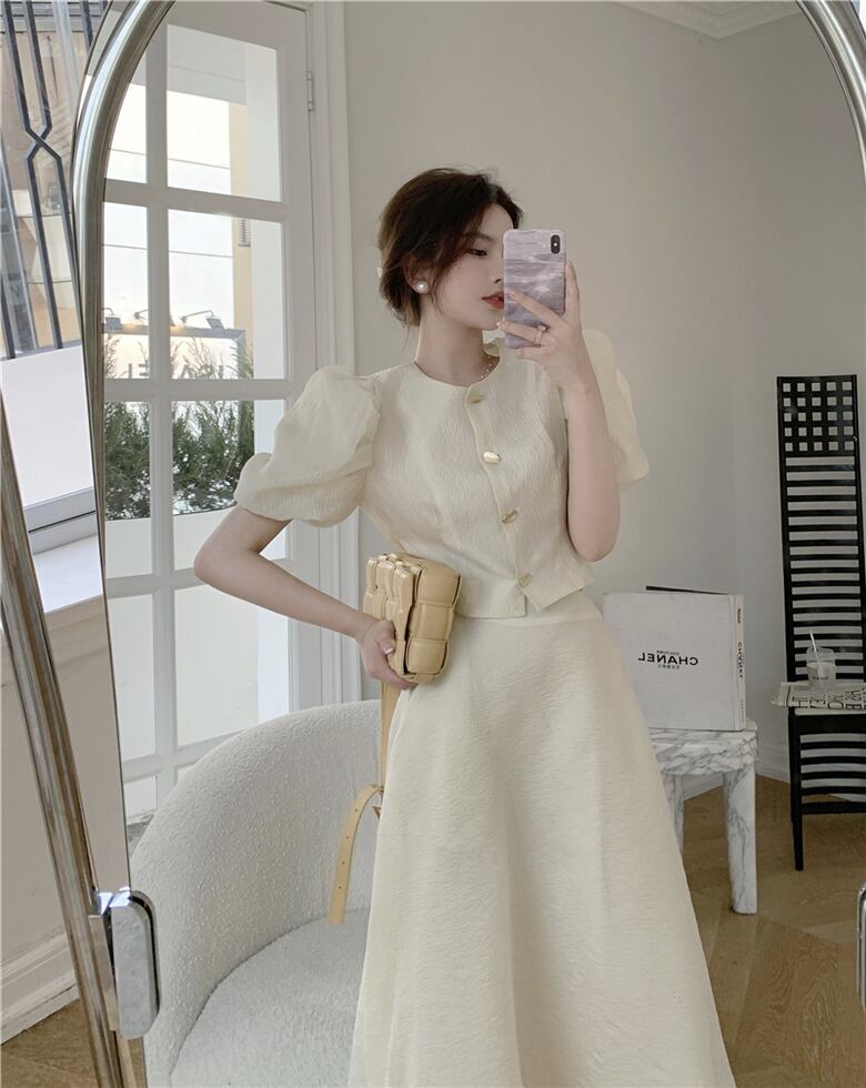 スタイルサマースリーブジャカードシャツ スカート 夏物 フラワークラフター97559857053
