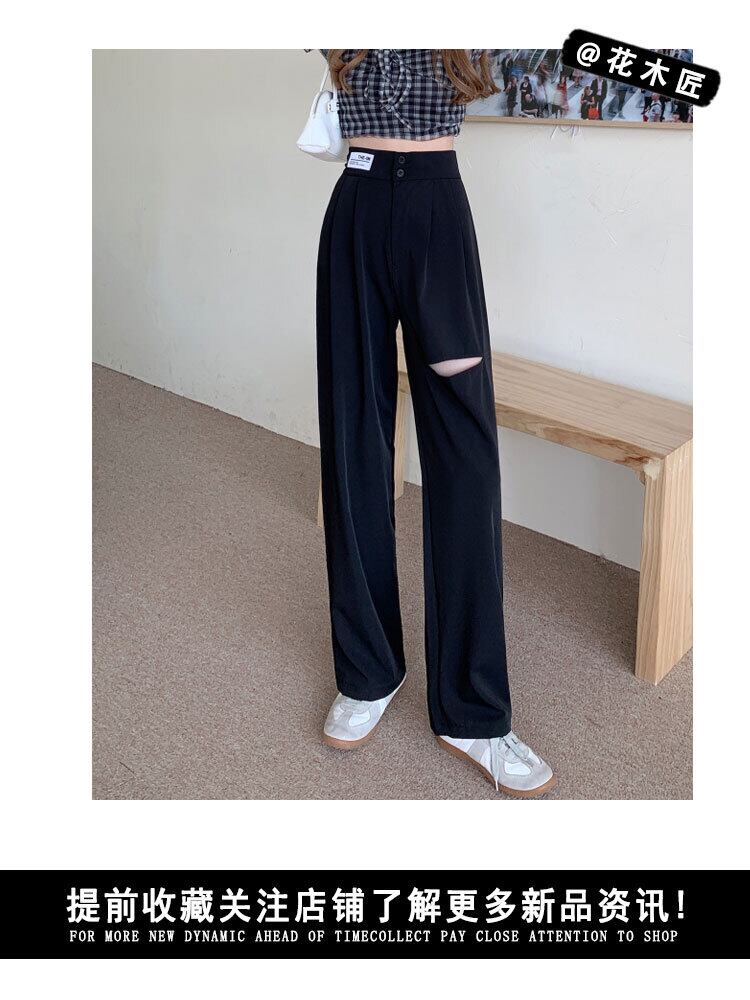 ブラックパンツ サマーカジュアル薄手ハイウェスト 夏物 フラワークラフター32015904763