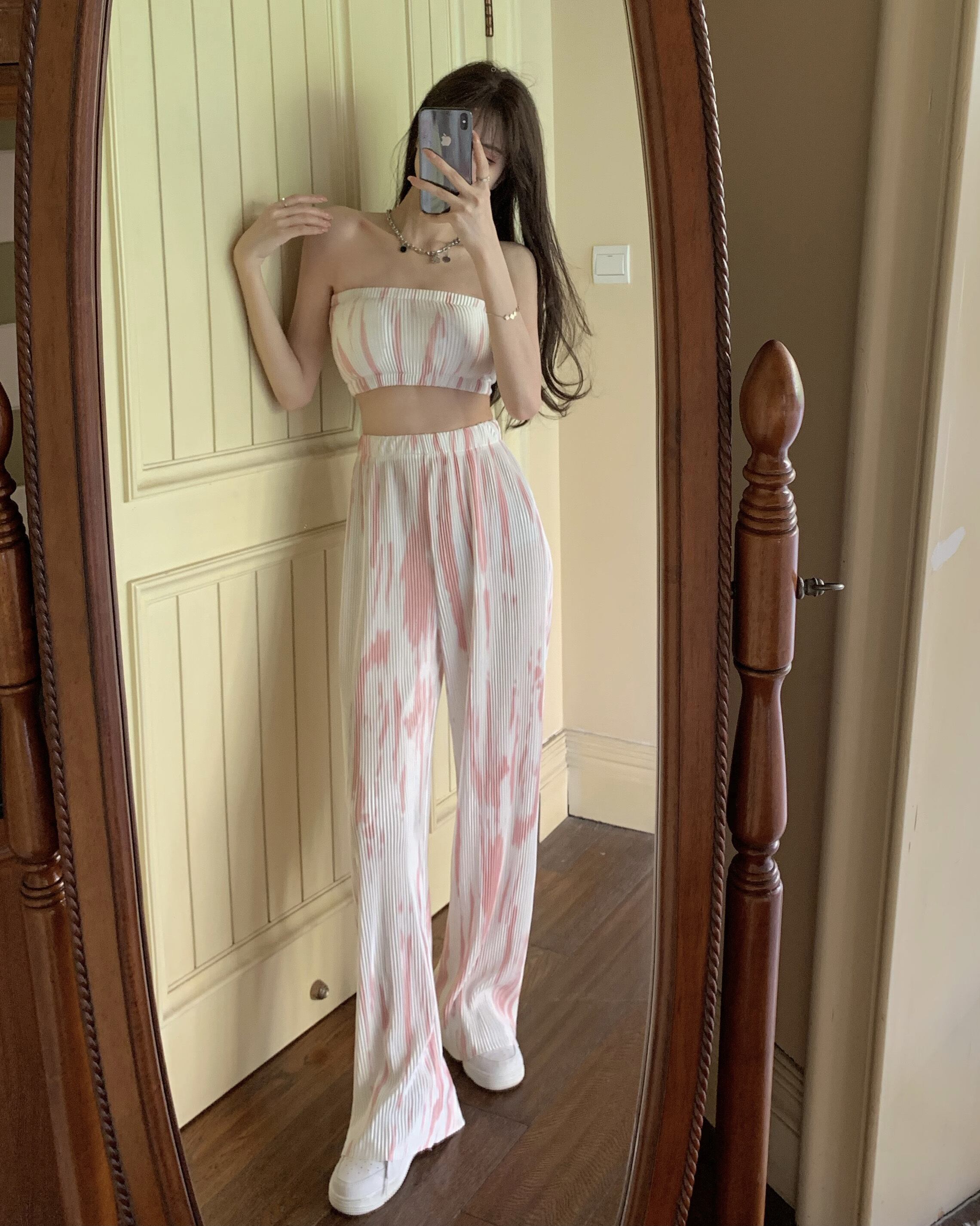 ワイドレッグパンツ サマートップス ショートカジュアルレッド 夏物 ワイドパンツ フラワークラフター48779054360