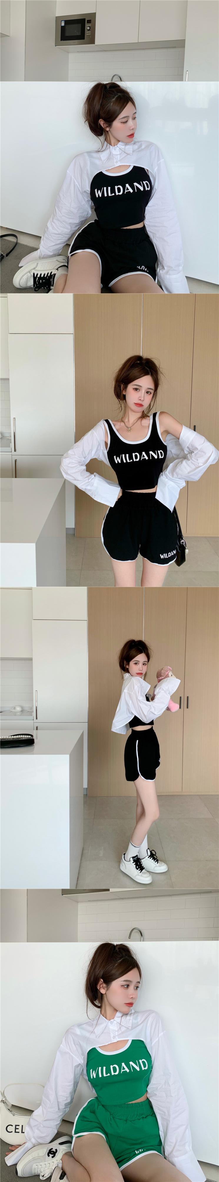 色:グリーンベスト+ショーツ,黒のベスト,白いシャツのワンピース