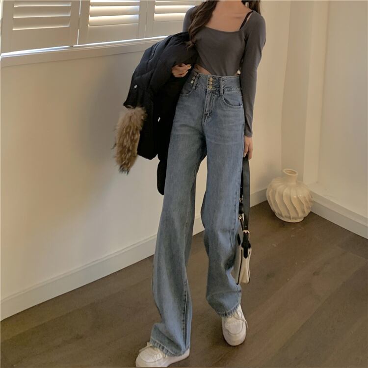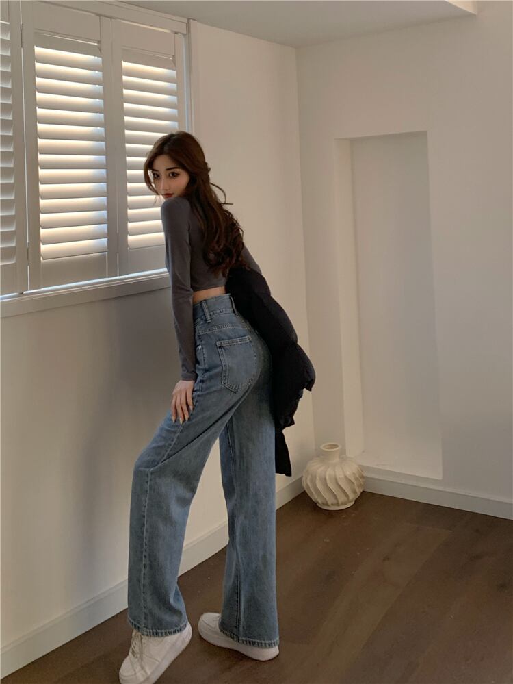 スタイルハイウェストウェストジーンズ レディーススプリングオータム薄手パンツ レッドルーズ 春物 秋物 フラワークラフター84698844988
