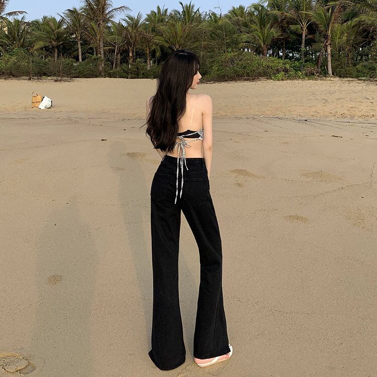 ジーンズ スリムフィットサマーブラックハイウェスト レッド 夏物 フラワークラフター55149726493