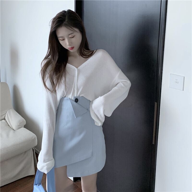 ホワイトセーター オータムルーズカジュアルVネックトップス ロング 秋物 フラワークラフター73039031919