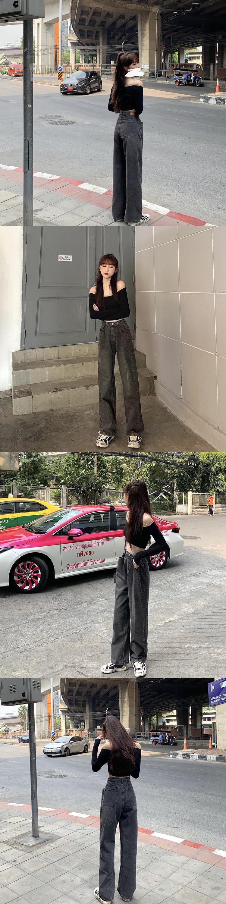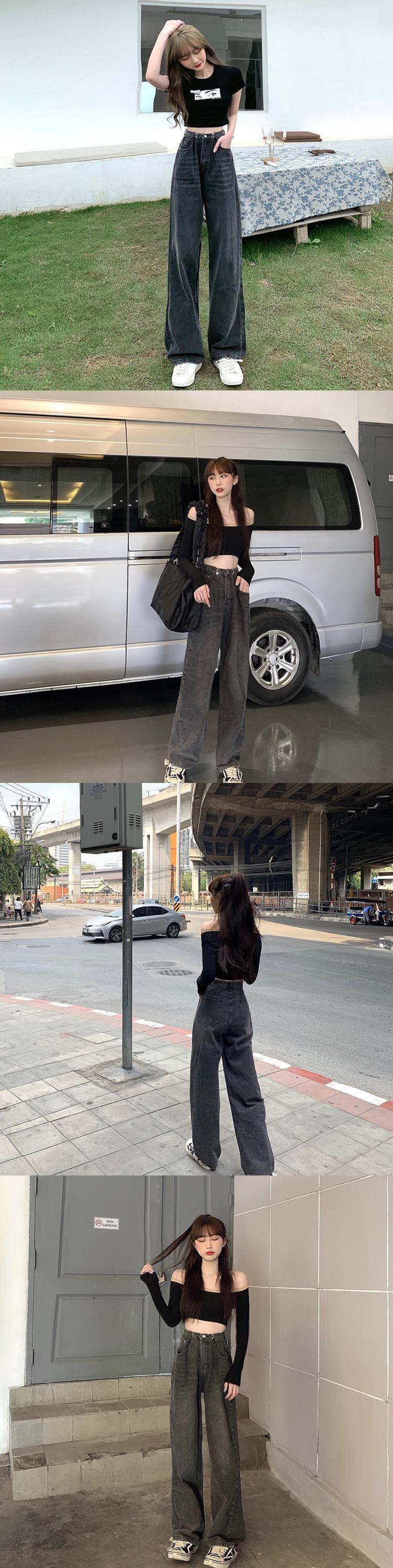 ハイウェストウェストジーンズ レディーススプリングオータムルーズパンツ スタイル 春物 秋物 フラワークラフター74939338284