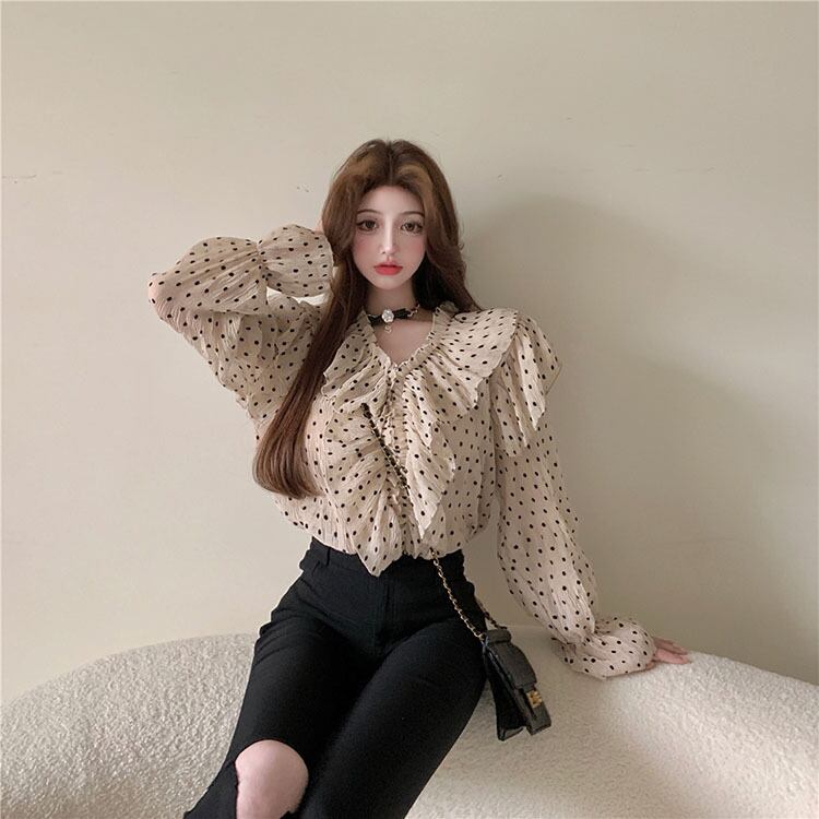水玉シフォンシャツ レディースサマーVネック ロング 夏物 フラワークラフター74957994445