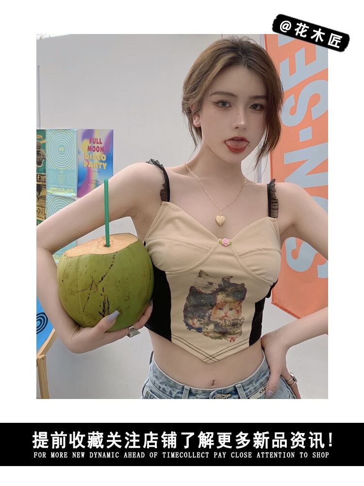 サマーストラップレスプリント柄シャツ ショートクロップトップ トップス 夏物 フラワークラフター38870399880