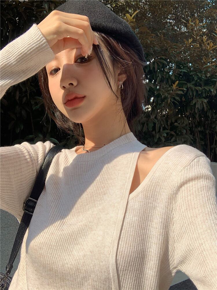 バックニットセーター オータムシャツ スリムトップス ロング 秋物 ステッチ フラワークラフター90180654646