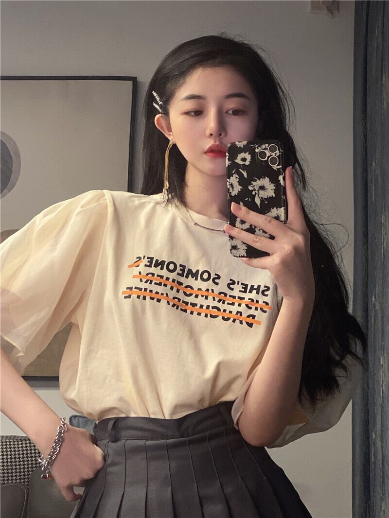 Tシャツ シャツ サマールーズラウンドネックトップス 夏物 Oネック フラワークラフター54829624988
