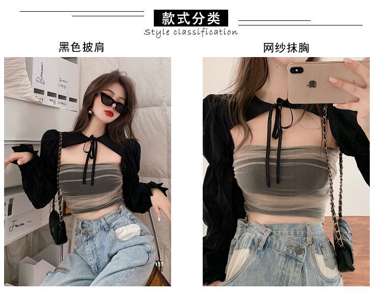 色:シングルブラックショール,メッシュチューブトップ一枚