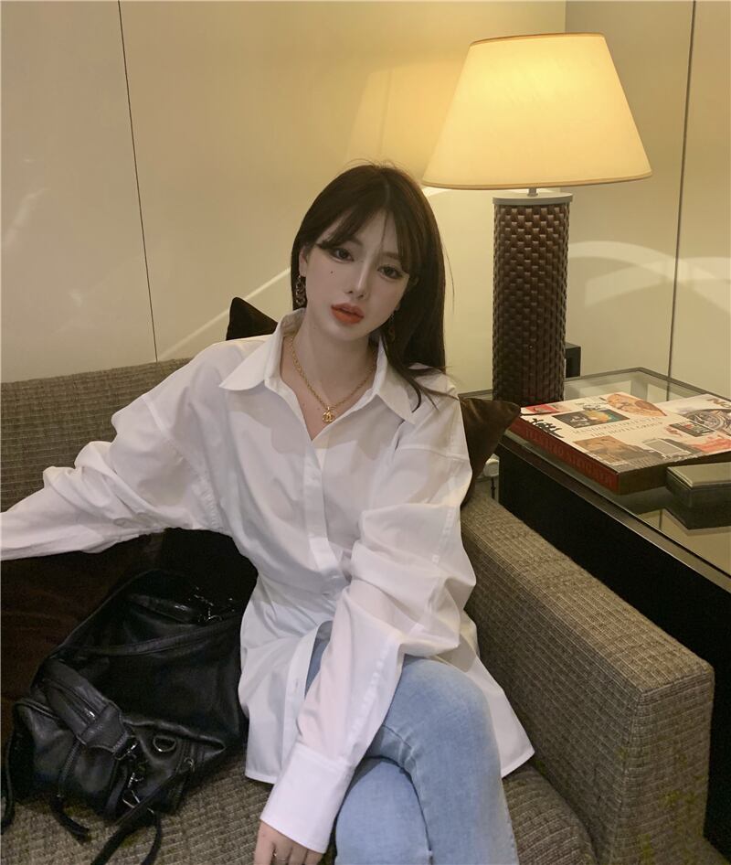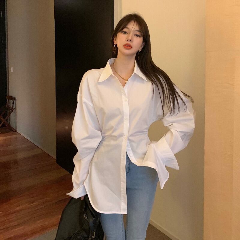 ホワイトシャツ スプリングオータムスタイルウェストプリーツドレス 春物 秋物 フラワークラフター91550087489