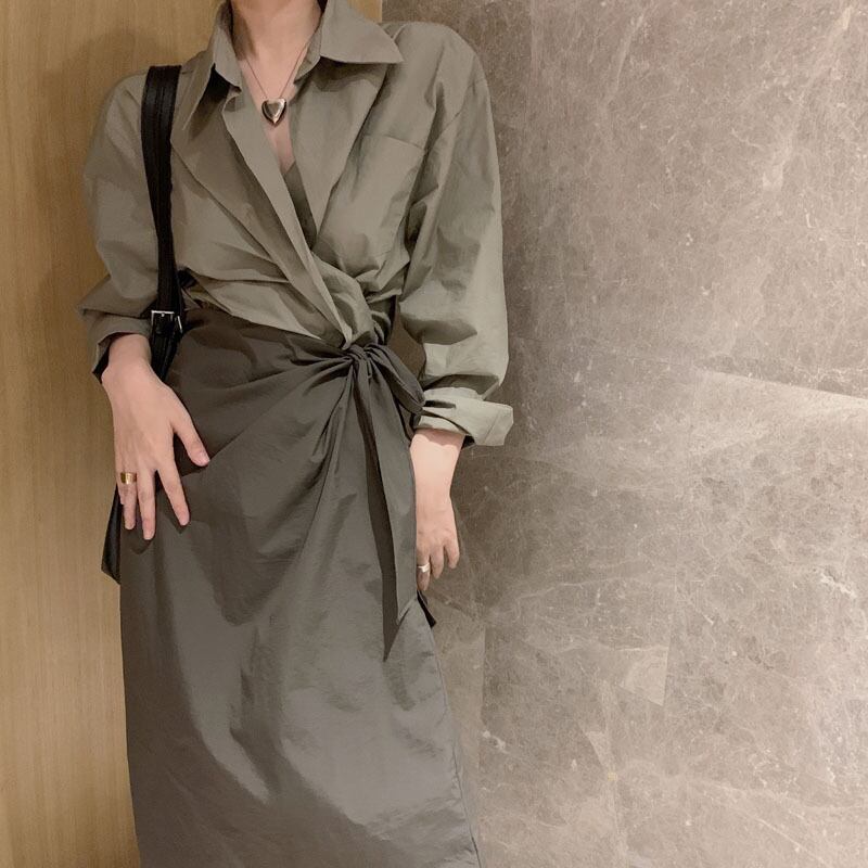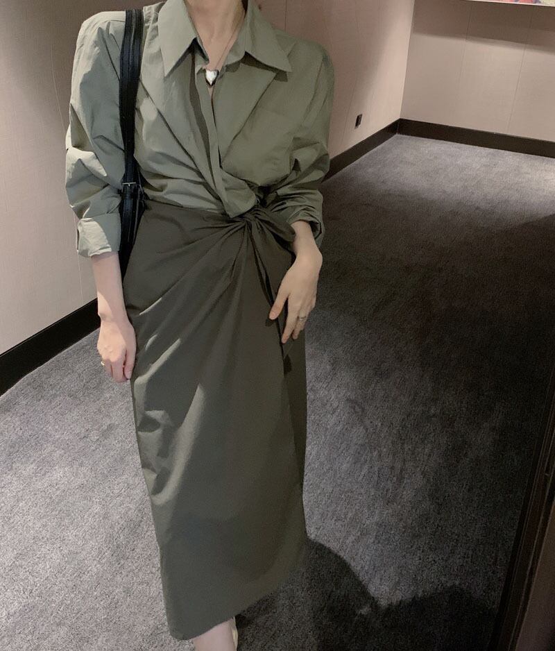 色:グレーのシャツワンピース,緑のハーフスカートワンピース