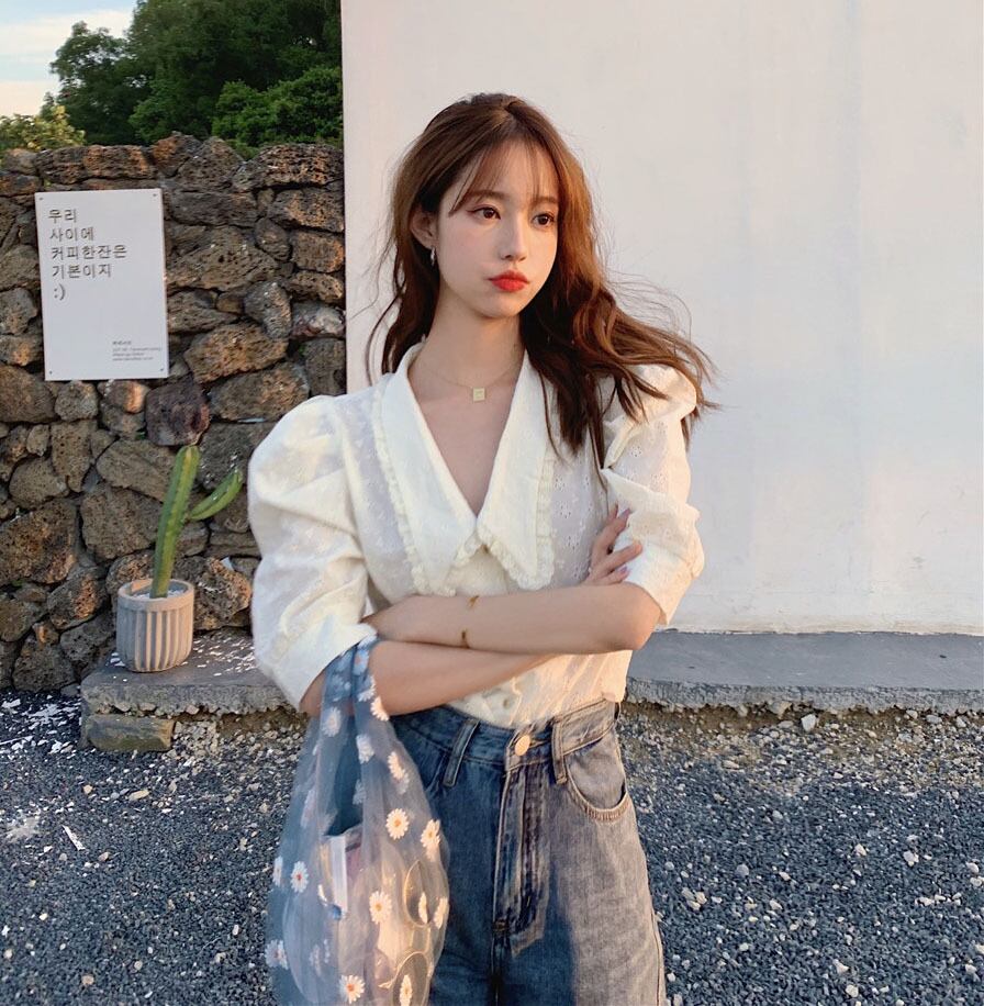 スリーブシャツ サマースタイルカラーショートトップス 夏物 フラワークラフター87974405469