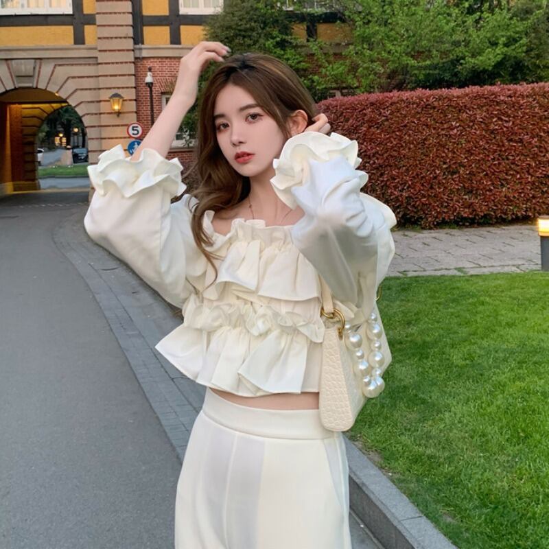シャツ スプリングオータムレッドショートトップス ロング 春物 秋物 フラワークラフター18236956898