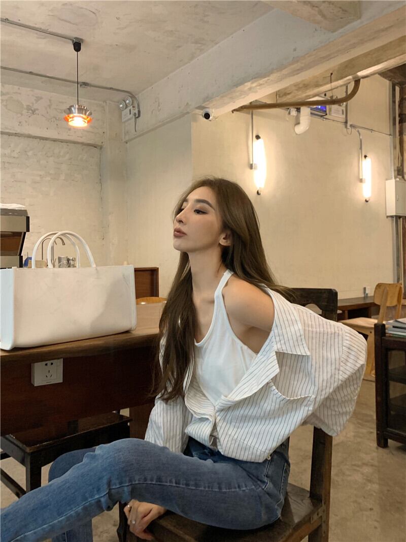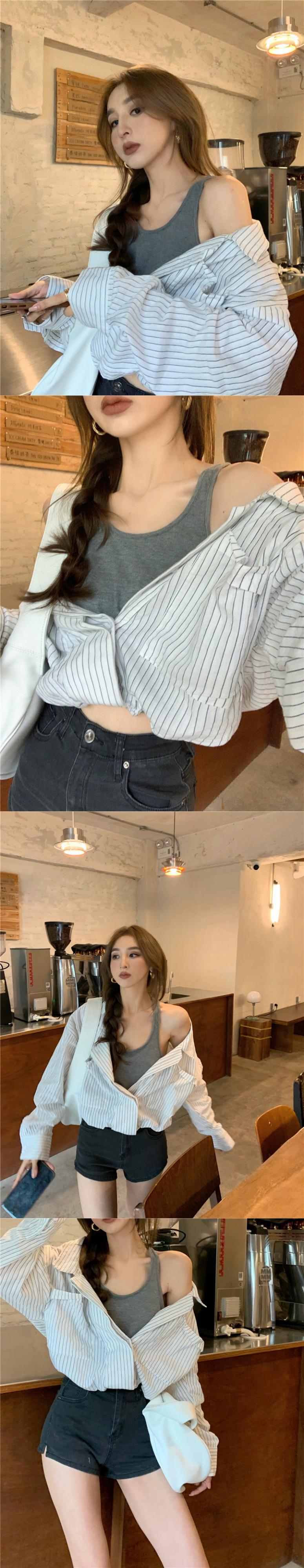 ストライプシャツ サマールーズショートトップス ロング 夏物 フラワークラフター67647829821