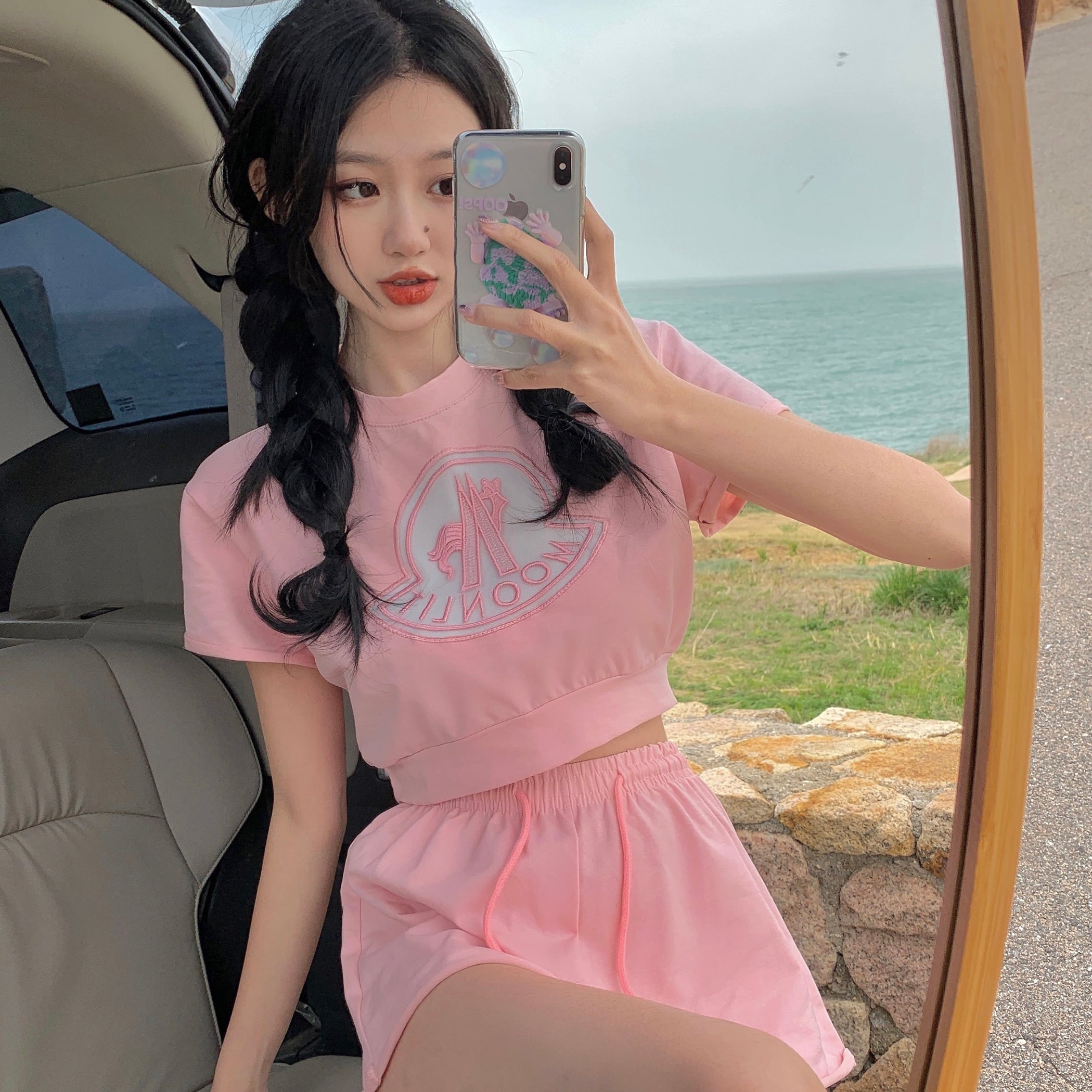 サマーショートトップス ハイウェストウェストショーツ セット レッド 刺繍 大人ガーリー スウィート キュート カジュアル 夏物 ブルマー フラワークラフター81067023509