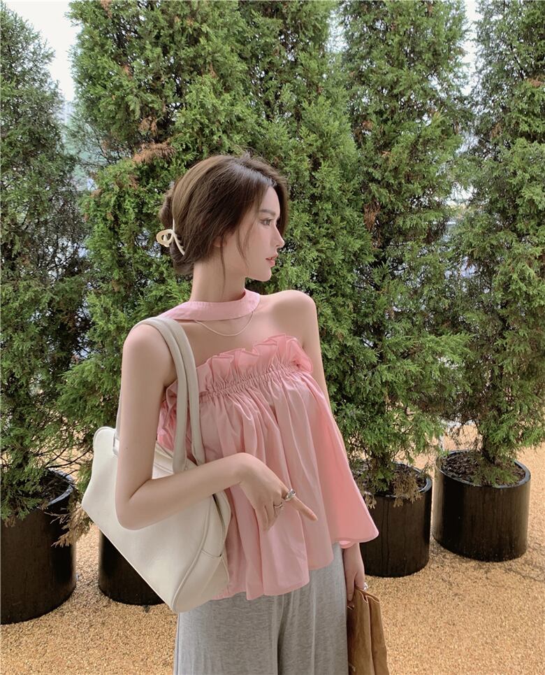 ホルターレディースサマーレッドバックショートトップス ピンク 夏物 フラワークラフター8467514764