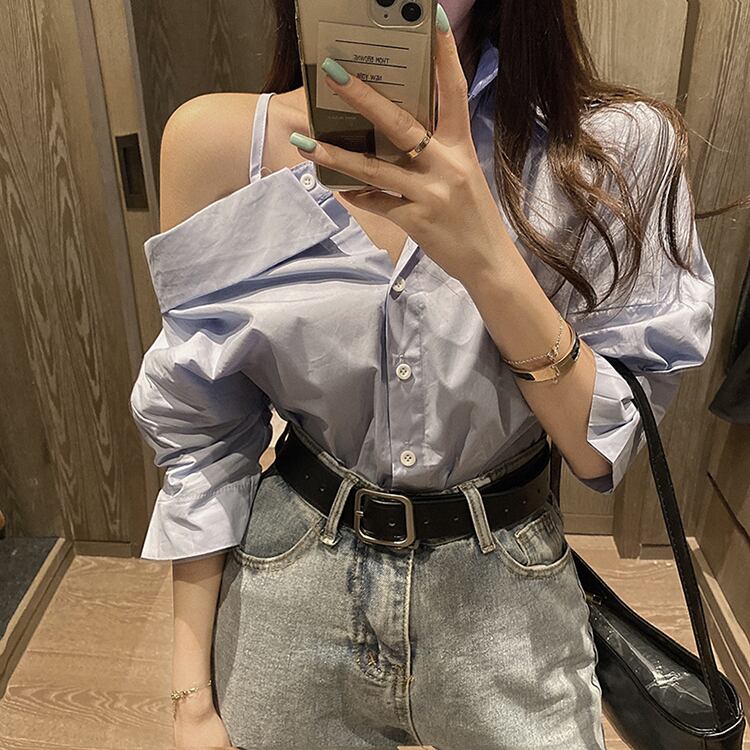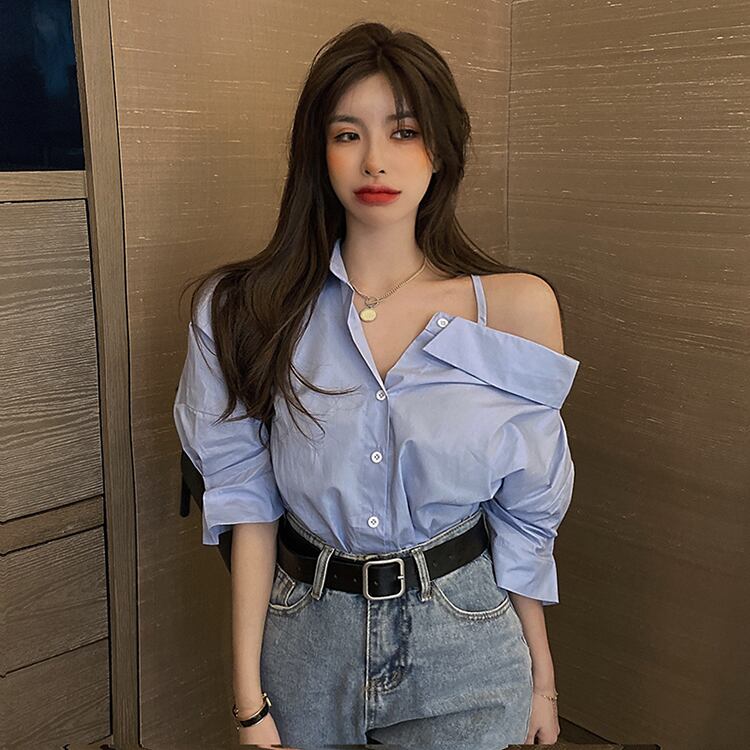 ブルーシャツ スプリングルーズトップス 春物 フラワークラフター47450375009