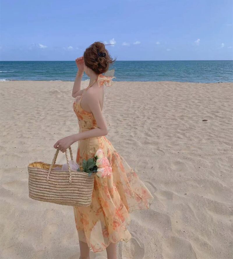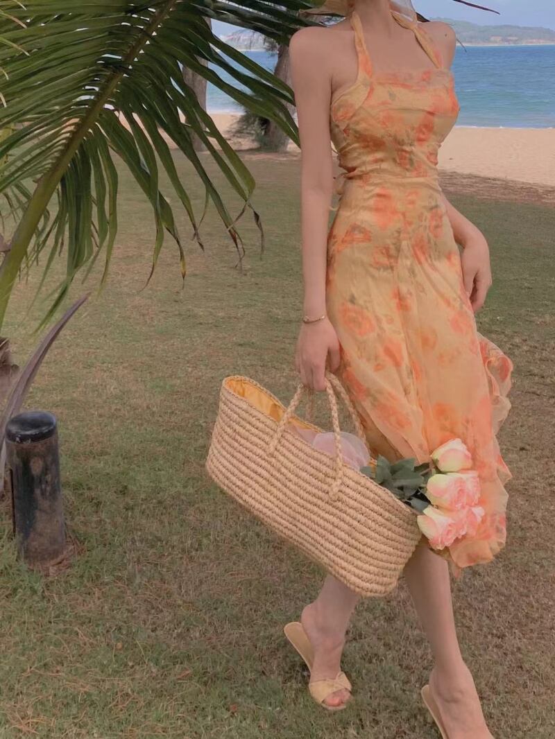 シフォンドレス サマースタンダードバックフローラルスカート レトロ 夏物 花柄 フラワークラフター93351784075