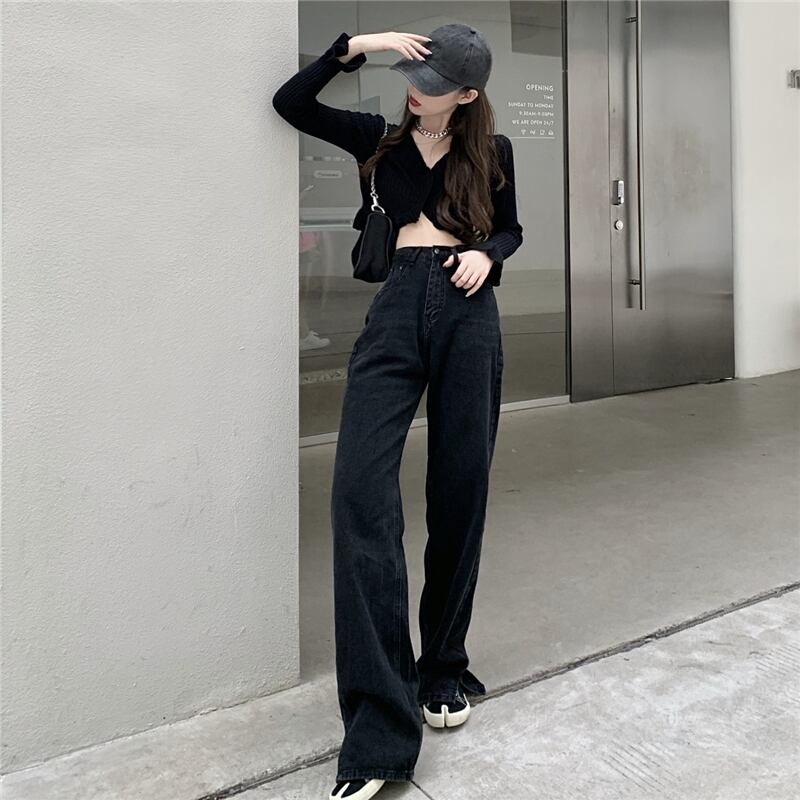 レッドパンツ オータムスタイルブラックジーンズ ルーズハイウェスト ストリート 秋物 フラワークラフター88453785213