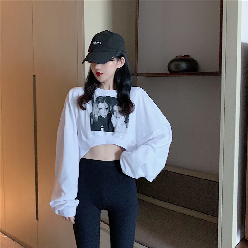 レッドプリント柄ショートセーター レディースルーズオータムスタイルラウンドネックトップス ロング 秋物 Oネック フラワークラフター40256211751