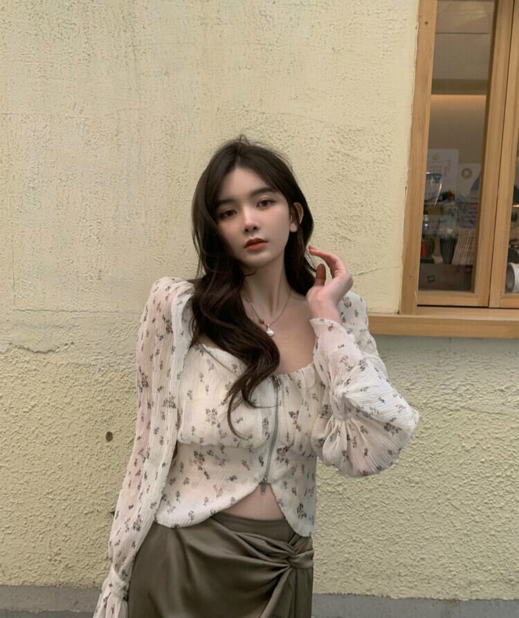 スリーブフローラルシャツ レディースサマーレッドジッパースリムショートトップス 夏物 花柄 フラワークラフター79242463172