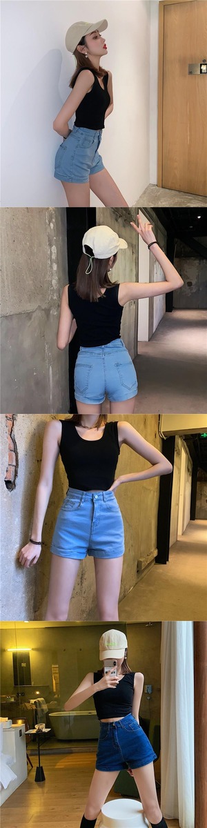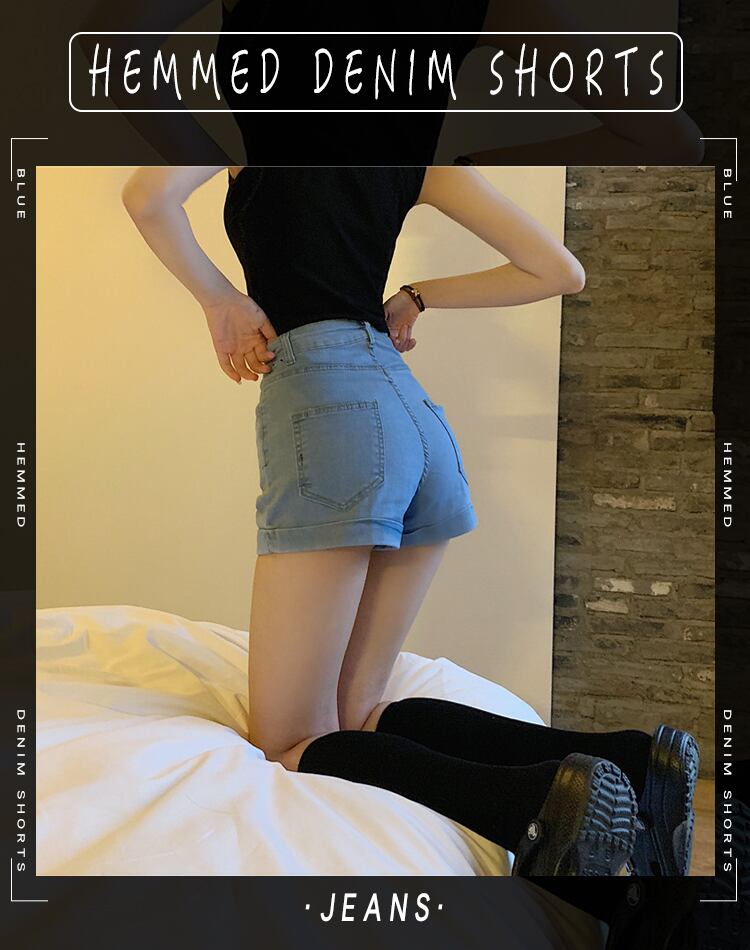 ハイウェストウェストスリムブルーショーツ レディースサマーパンツ 夏物 ブルマー フラワークラフター10622778197