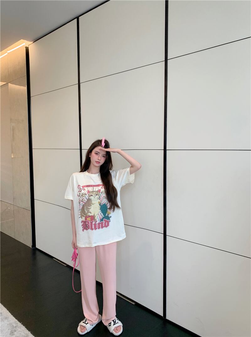 色:甘い半袖ワンピース,花びらのピンクのズボン