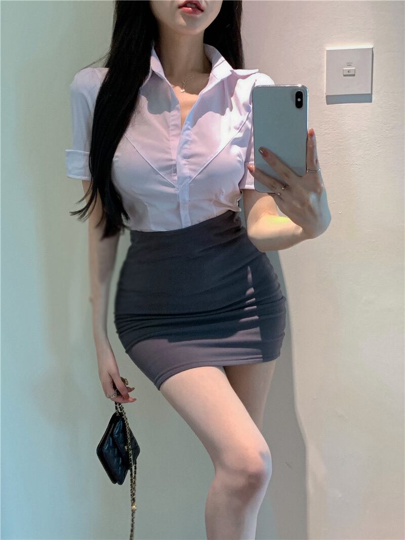 色:シャツ一枚,黒スカートワンピース,グレースカートシングルピース