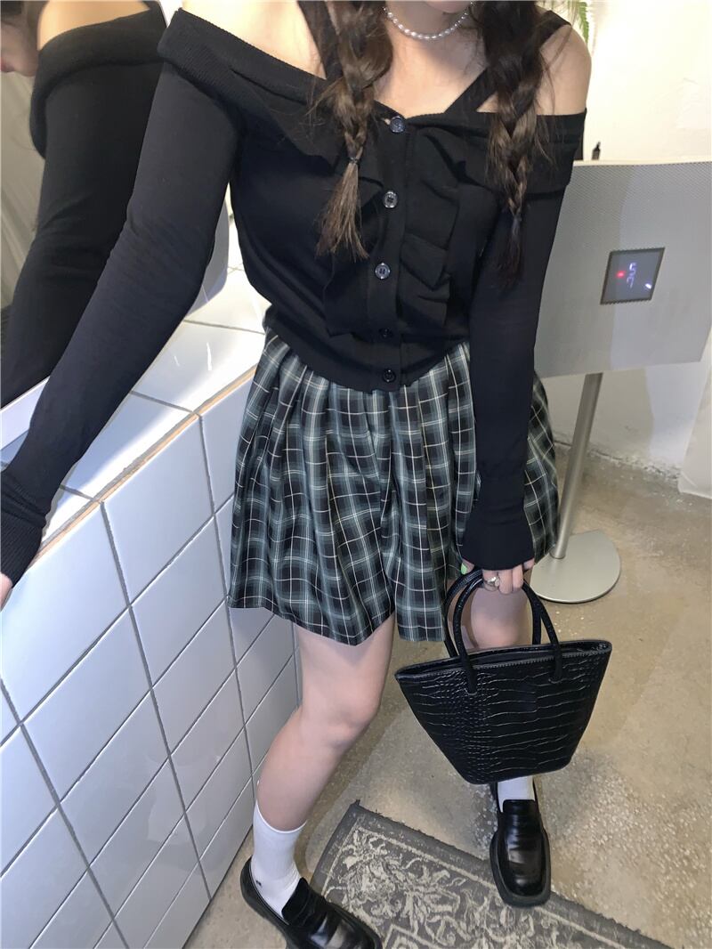 ブラックニットカーディガンサマースタイルストラップレススリムトップス ロング 夏物 フラワークラフター64527863553
