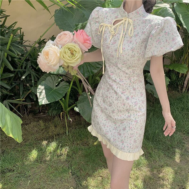 ドレス サマースタンダードフローラルスカート ウェストスリーブAライン レトロ 夏物 花柄 フラワークラフター42436395582