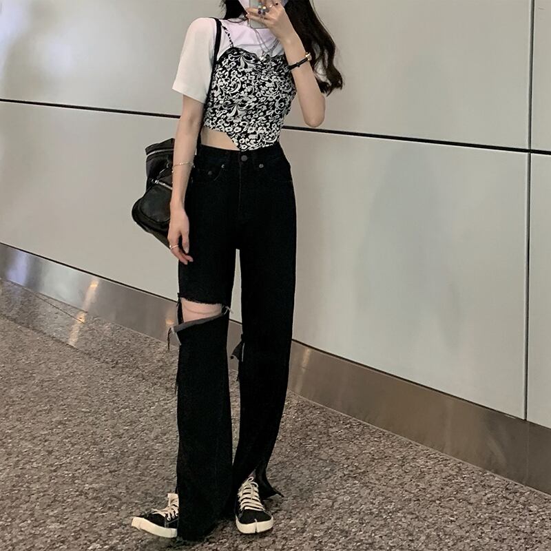 ジーンズ レディースサマーハイウェストウェストルーズ薄手パンツ 夏物 フラワークラフター94321059354