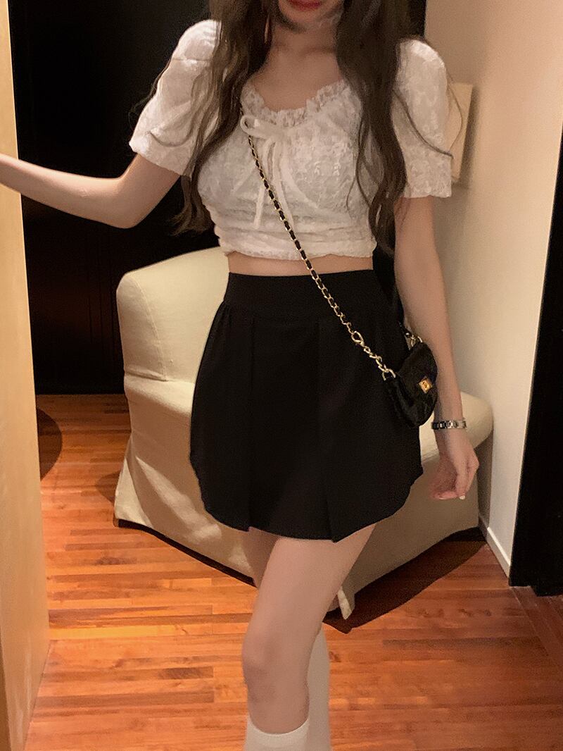 色:白いレースのシャツ一枚,ブラックショートスカートワンピース